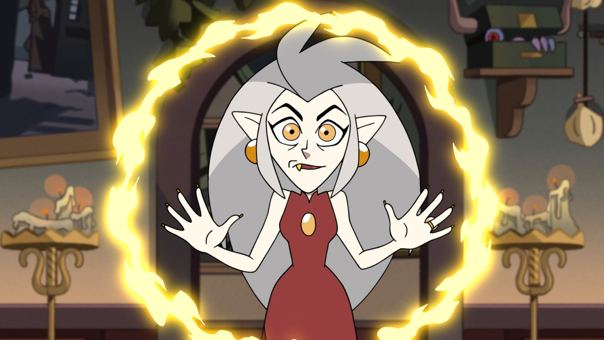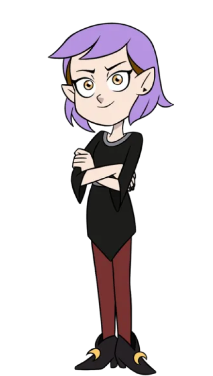 Edalyn "Eda" Clawthorne is one of the two deuteragonists (alongside King) of The Owl House. She is a rebellious witch who was cursed as a teenager by her older sister, Lilith, which led to her running away from home and becoming the most wanted and powerful wild witch in the Boiling Isles.